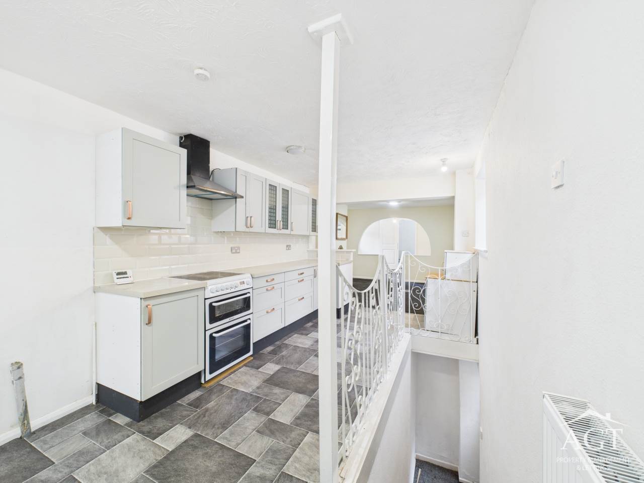 Access to the apartment is via an entrance to the side of the shop below. As you walk into the property there are stairs leading up to the kitchen.
