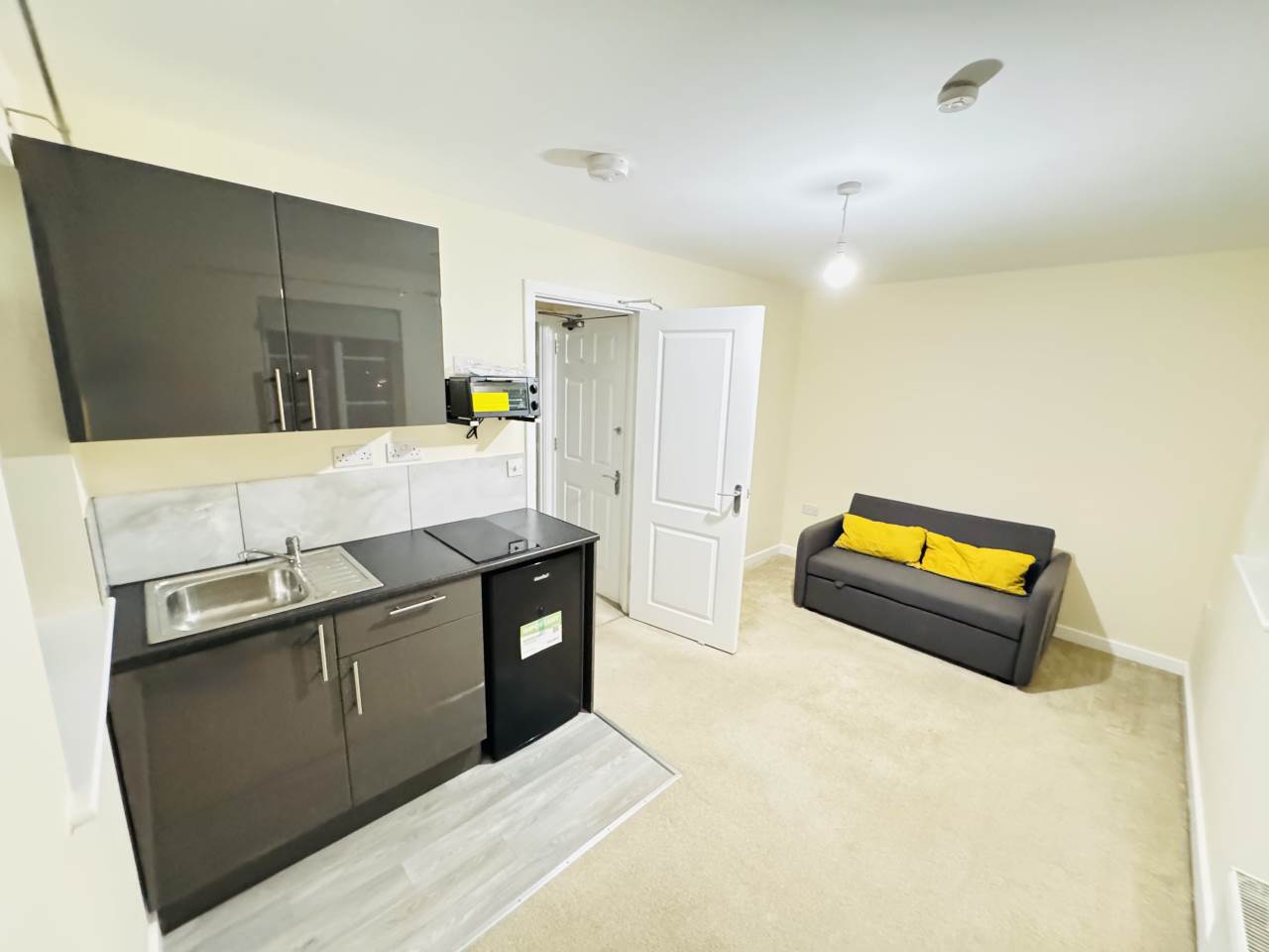 ? Brand New Kitchenette with sink, fridge/freezer, 2-plate electric hob, and grill to be installed